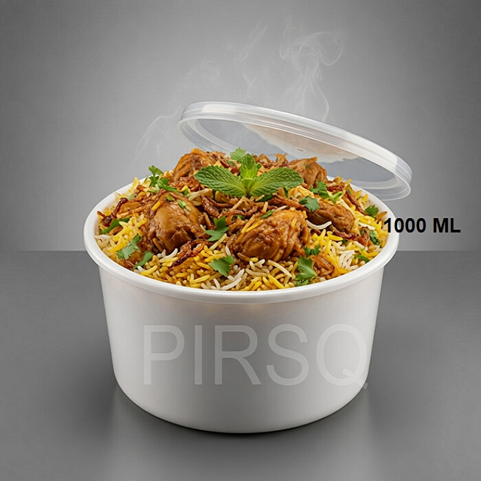 Buy 1000ml white plastic container with transparent lid online. Perfect for packaging chutney, dips, sauces, pickles, and desserts. Food-grade, leak-proof, stackable & reusable. Ideal for cloud kitchens, caterers & home businesses in Bengaluru. Bulk orders available.