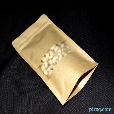 Kraft Stand Up Pouche, Brown Stand up Pouch With Window. Eco friendly, Biodegradable, Convenient,Sturdy,Used for packing of various item.